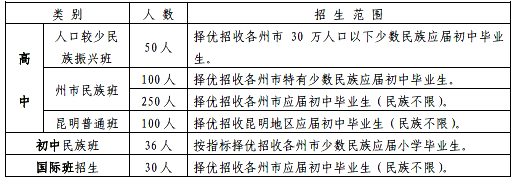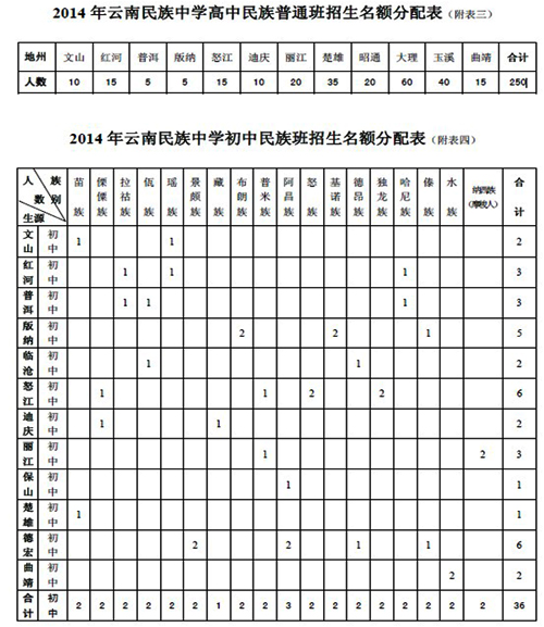 根據(jù)云南省教育廳、云南省民委的批示,云南民族中學(xué)2014年秋季面向全省各州市招生情況如下。
