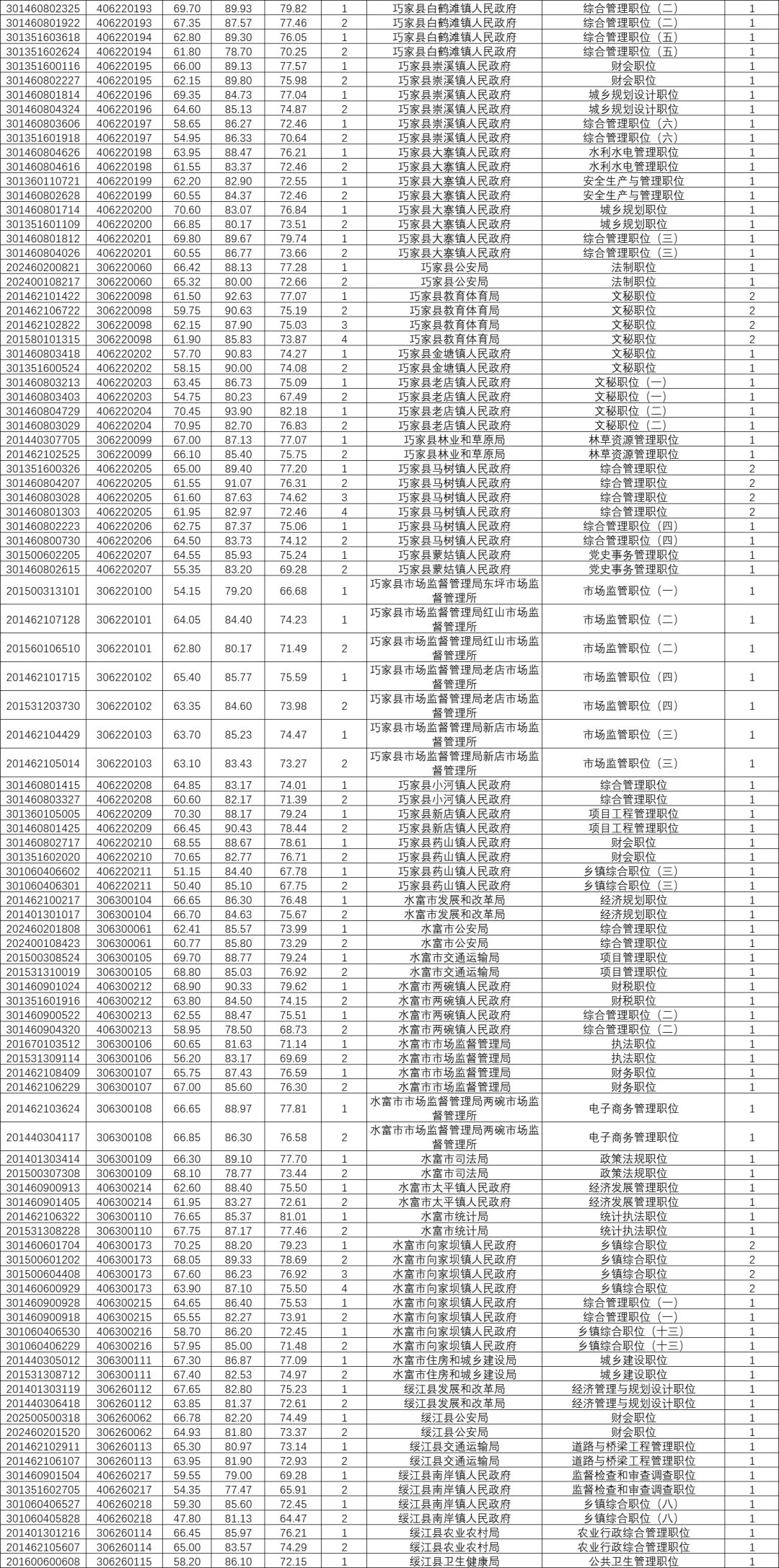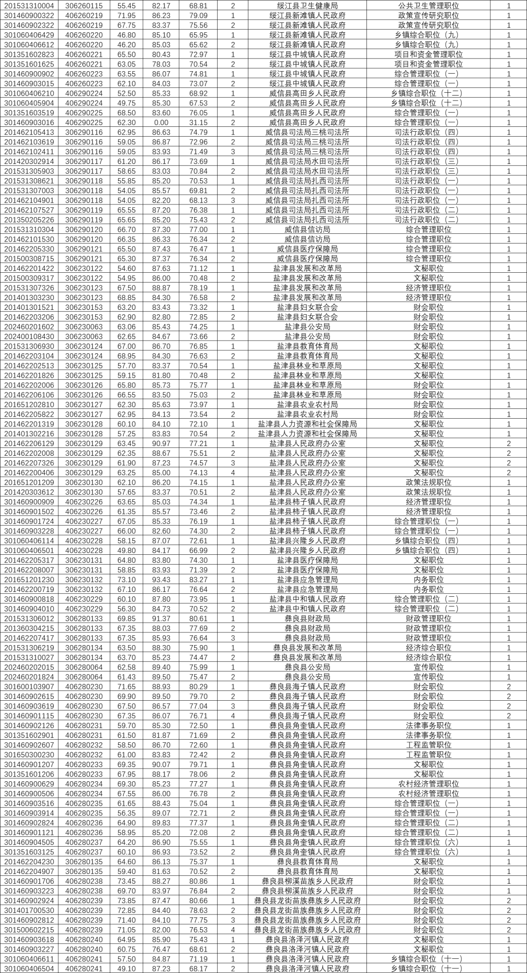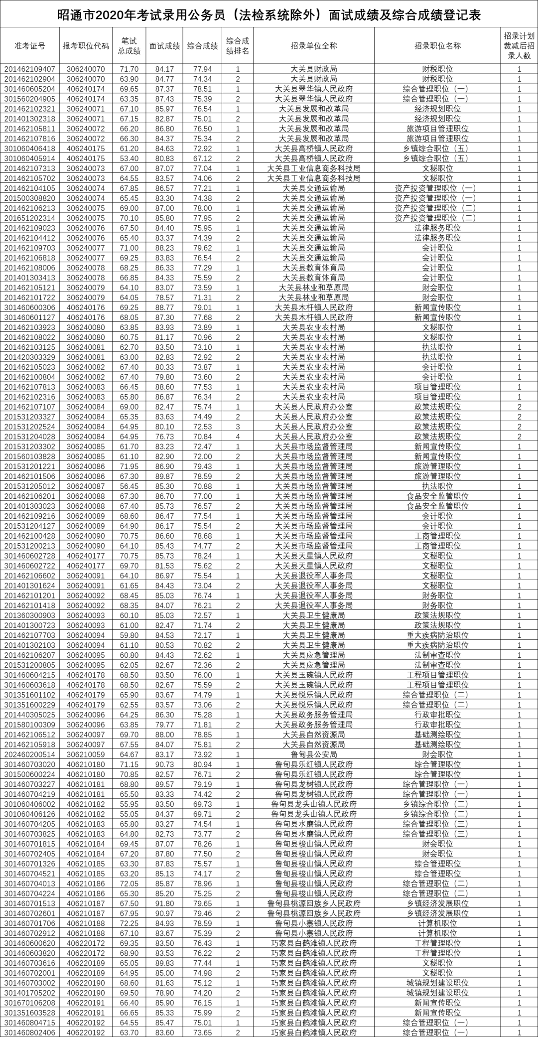 昭通市2020年考試錄用公務(wù)員(法檢系統(tǒng)除外)面試成績及綜合成績登記表