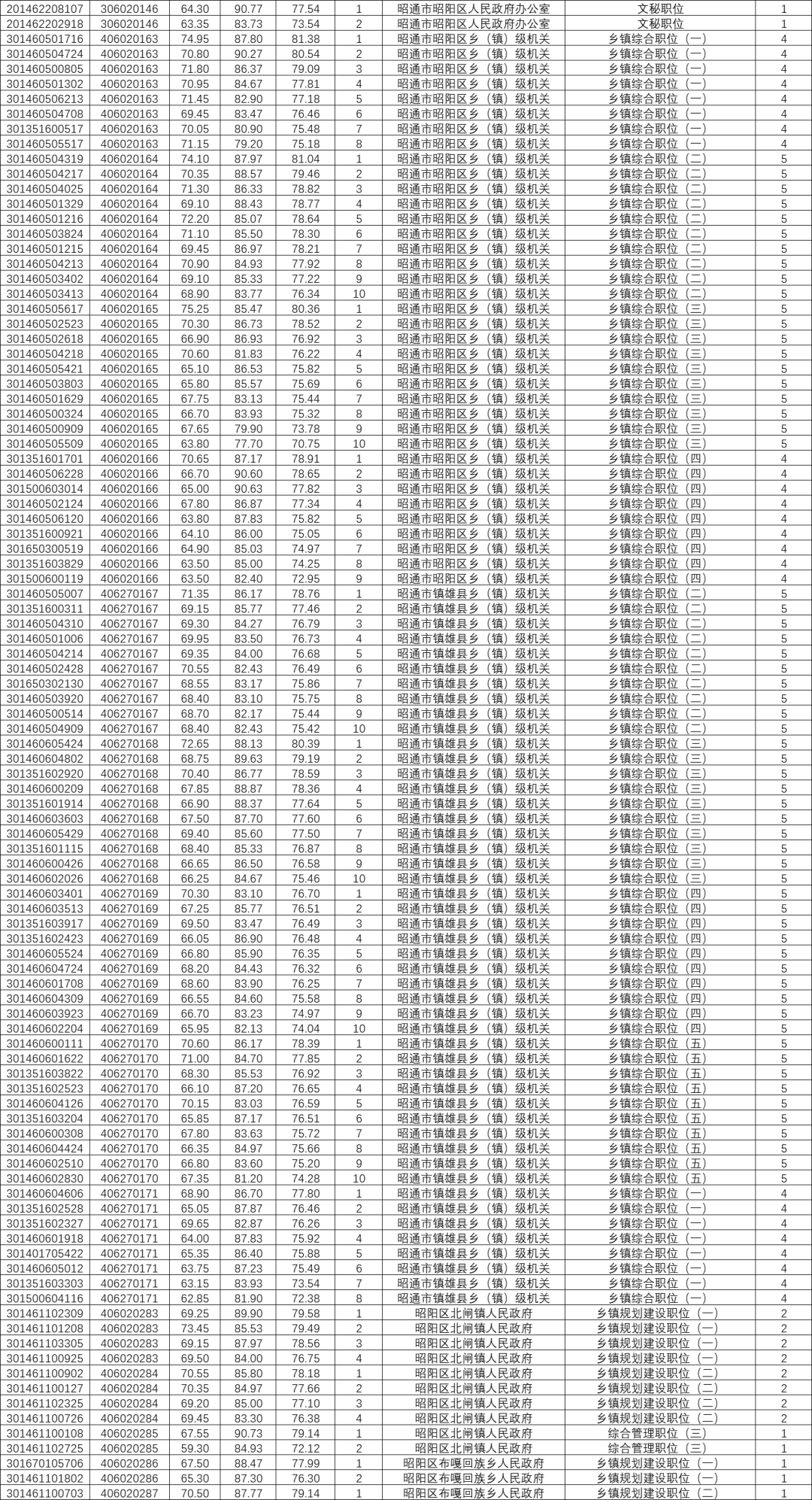 關(guān)于公布昭通市2020年考試錄用公務(wù)員