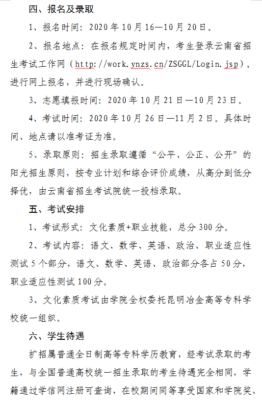 云南財(cái)經(jīng)職業(yè)學(xué)院2020年高職擴(kuò)招招生章程