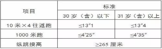 體能測(cè)試參照《公安機(jī)關(guān)錄用人民警察體能測(cè)評(píng)項(xiàng)目和標(biāo)準(zhǔn)(暫行)》進(jìn)行。具體標(biāo)準(zhǔn)如下: