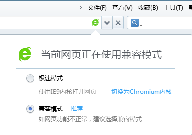 點擊地址欄的內(nèi)核切換按鈕,可以手動切換瀏覽模式,如兼容模式切換為極速模式: