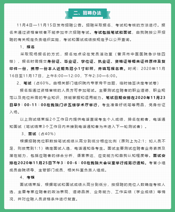 普洱市中醫(yī)醫(yī)院招人啦!報名詳見......