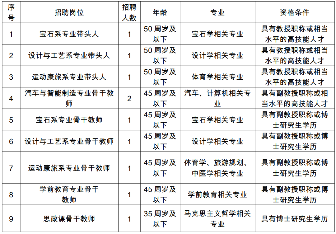 滇西應用技術大學珠寶學院位于云南省騰沖市,是滇西應用技術大學所屬特色學院,屬公辦應用型本科院校。根據《滇西應用技術大學高層次人才引進辦法(試行)》(滇西大黨〔2019〕8號)、《保山市引進人才辦法(試行)》(保辦發(fā)〔2019〕4號)文件精神,為加強師資隊伍建設,滇西應用技術大學珠寶學院計劃引進高層次人才10名,現(xiàn)將有關事宜公告如下: