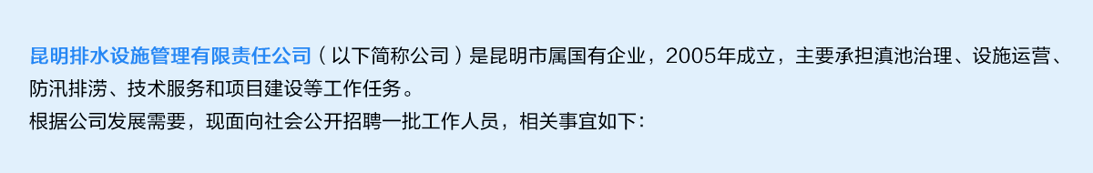 昆明排水設(shè)施管理有限責(zé)任公司公開招聘啟事