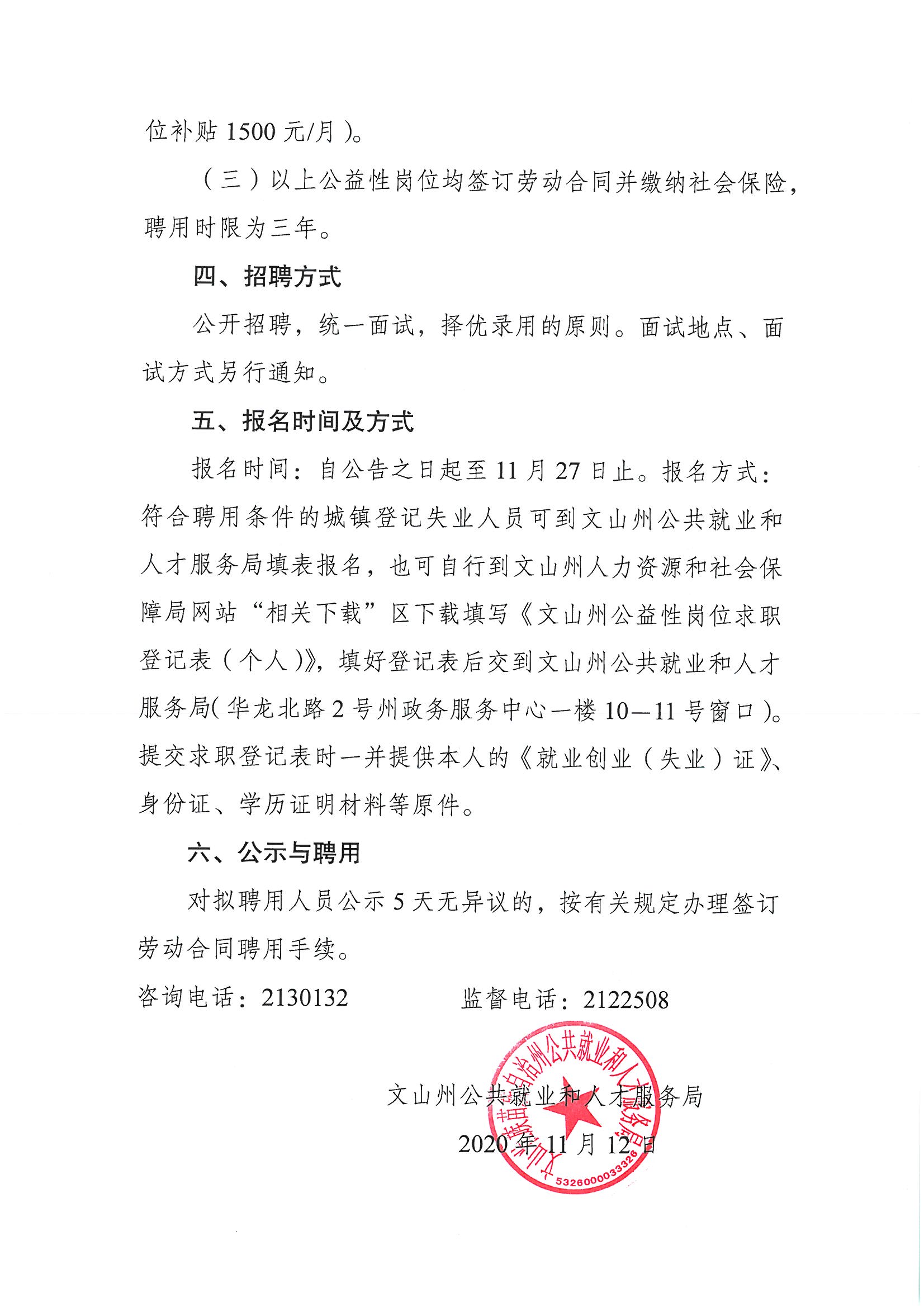 2020年文山州公共就業(yè)和人才服務局招聘公告(第五期)