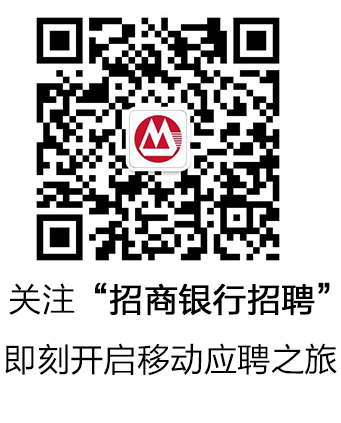 官方微信:掃描下方二維碼,關(guān)注“招商銀行招聘”微信公眾平臺(tái),獲取最新的校園招聘信息,點(diǎn)擊“我要應(yīng)聘-校園招聘-我要應(yīng)聘”,選擇我行并投遞簡歷!