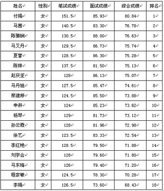 昭陽區(qū)2014年選聘大學(xué)生村官面試工作已于2014年9月2日結(jié)束?,F(xiàn)將考生成績公示如下: