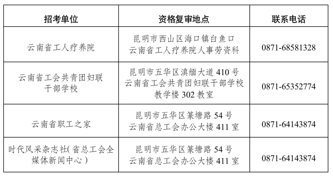 云南省總工會直屬事業(yè)單位2020年公開招聘工作人員資格復審公告