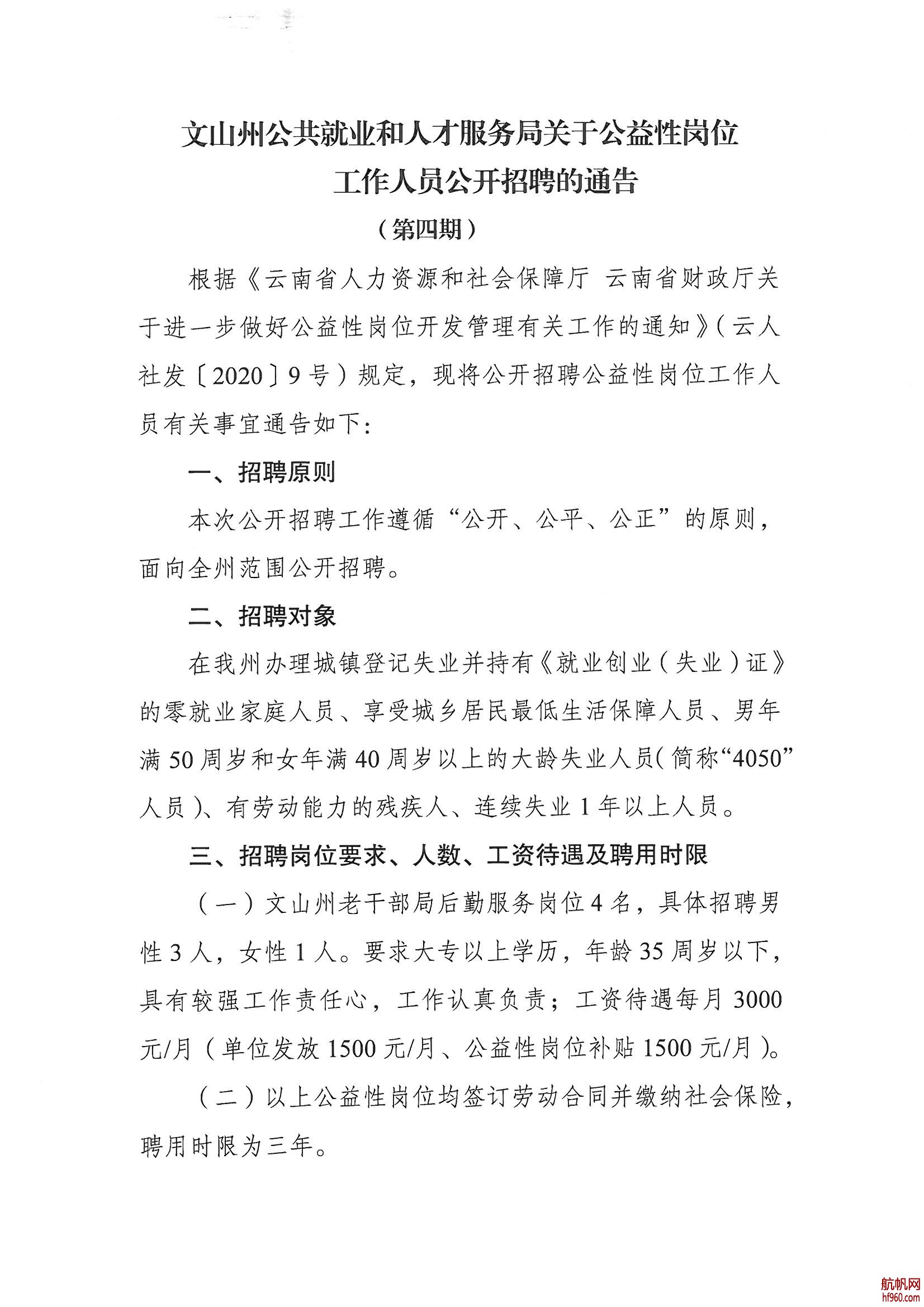 關(guān)于公益性崗位工作人員公開招聘的通告(第四期)
