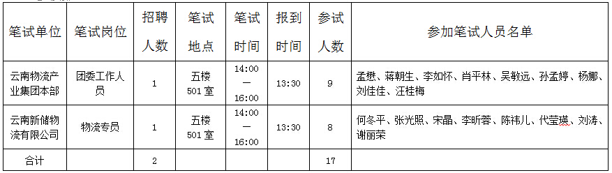 筆試地點:昆明市西山區(qū)廣福路8號采荷路(省委斜對面,省委警衛(wèi)局旁),云南物流產(chǎn)業(yè)集團有限公司辦公大樓。