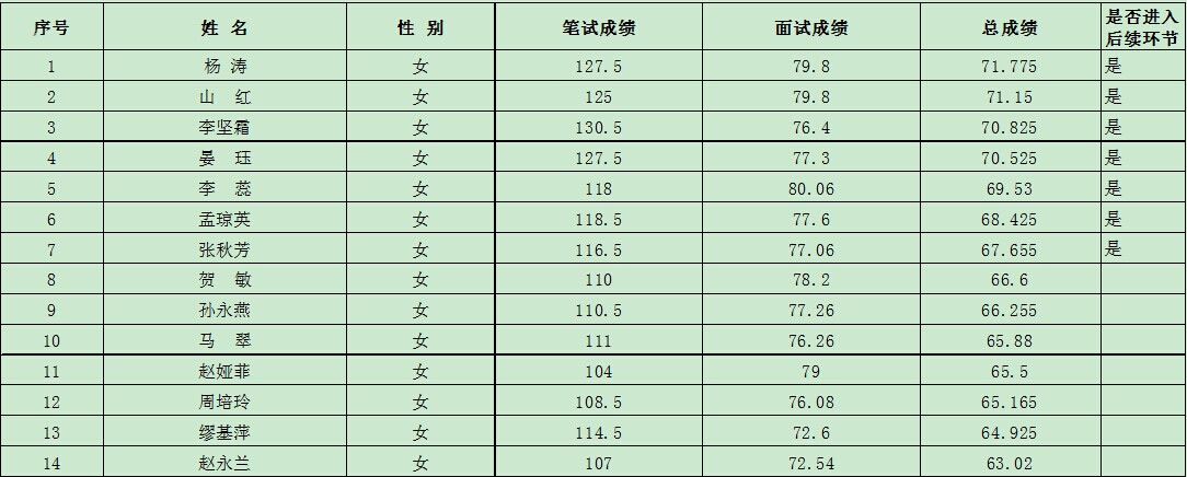 兩區(qū)2014年大學(xué)生村官考試成績(jī)(女生組)