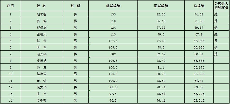 兩區(qū)2014年大學(xué)生村官考試成績(jī)(男生組)
