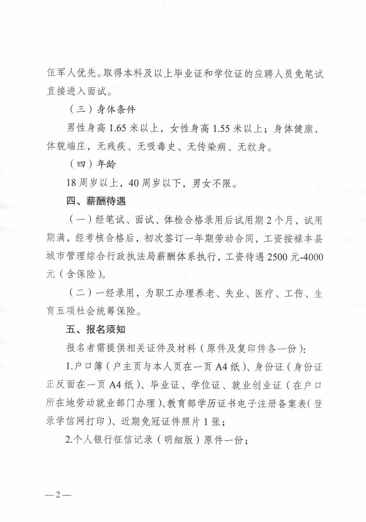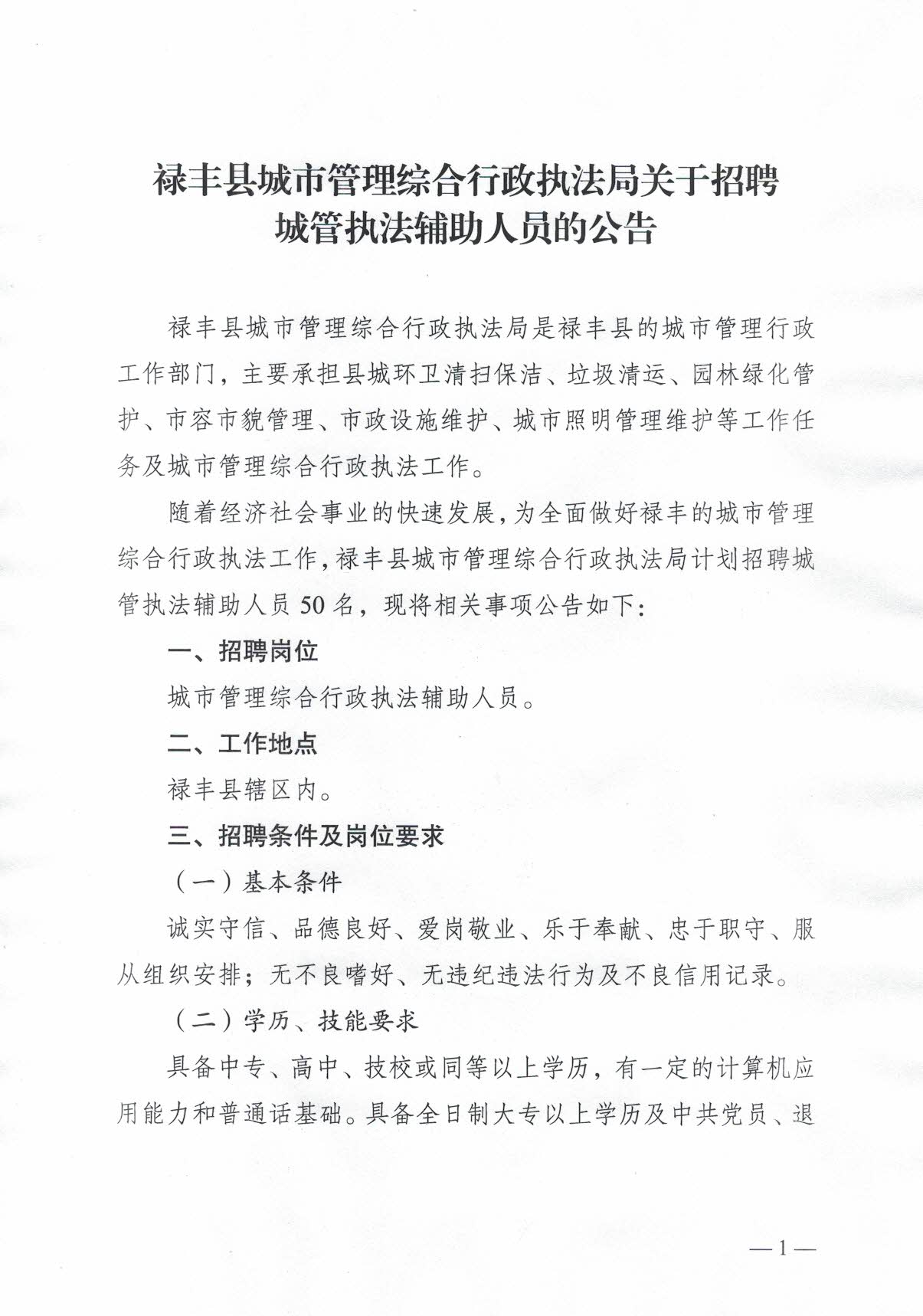 祿豐縣城市管理綜合行政執(zhí)法局關(guān)于招聘城管執(zhí)法輔助人員的公告