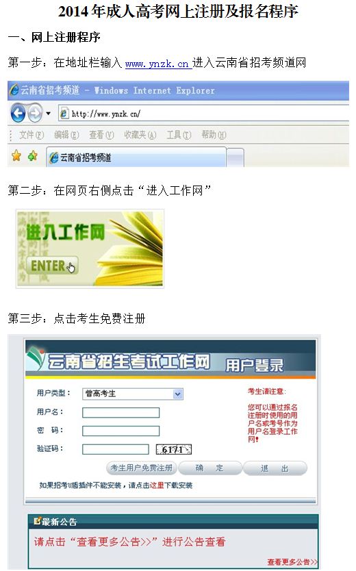 昆明理工大學(xué)2014年成人高考網(wǎng)上報(bào)名操作基本流程
