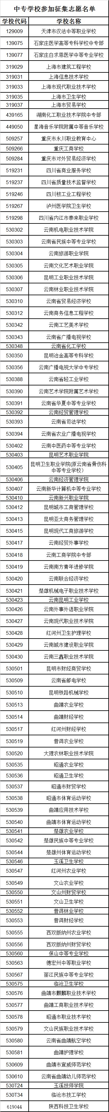 參加征集志愿院校名單