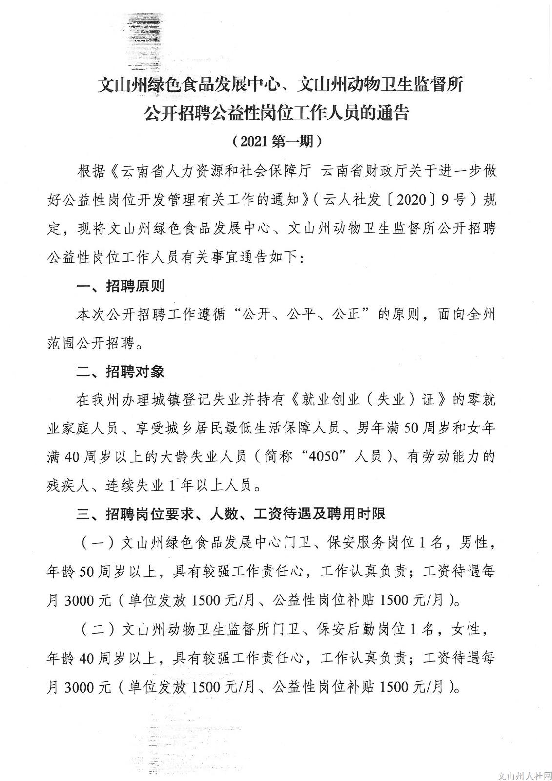 2021年文山州綠色食品發(fā)展中心文山州動(dòng)物衛(wèi)生監(jiān)督所招聘公益性崗位通告