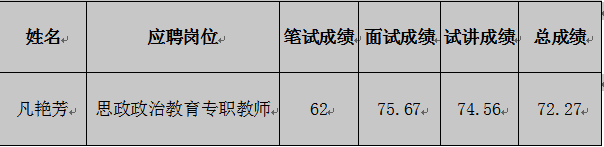 關于2020年思想政治教育專職教師招聘考試成績的公示