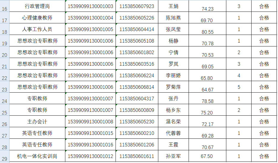 我校嚴格按照《事業(yè)單位公開招聘人員暫行規(guī)定》(中華人民共和國人事部令第6號)《云南省事業(yè)單位公開招聘工作人員辦法》(云人社發(fā)〔2016〕182號)及《云南省事業(yè)單位公開招聘工作人員面試測評暫行辦法》(云人社發(fā)〔2016〕405號)有關文件規(guī)定及《云南輕紡職業(yè)學院2020年第三批公開招聘事業(yè)單位工作人員公告》細則,于2020年10月24日全省統(tǒng)一筆試和12月5日學校面試兩個階段開展招聘工作,根據(jù)綜合成績排名經(jīng)體檢及考核考察階段,學校于2021年1月11日組織召開了云南輕紡職業(yè)學院第1次院長辦公會,確定擬聘用人員28人,現(xiàn)將擬聘用人員信息進行公示。