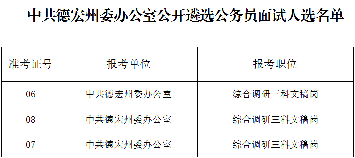 中共德宏州委辦公室公開遴選公務(wù)員面試公告