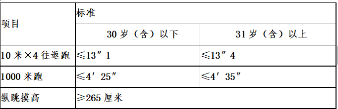 2.體能測試為達標制,并采取一票否決制。達到規(guī)定項目標準即為合格,否則為不合格,進入筆試環(huán)節(jié)。