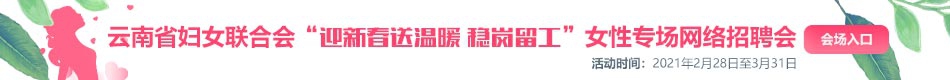 為貫徹落實黨中央、國務院和省委、省政府關(guān)于做好春節(jié)期間新冠肺炎疫情防控工作要求,鞏固來之不易的防控成果,按照《人力資源社會保障部、工業(yè)和信息化部、民政部、交通運輸部、國務院扶貧辦、全國總工會、全國婦聯(lián)關(guān)于開展“迎新春送溫暖、穩(wěn)崗留工”專項行動的通知》和《云南省就業(yè)工作領(lǐng)導小組辦公室關(guān)于認真做好“迎新春送溫暖、穩(wěn)崗留工”專項行動的通知》要求,降低疫情傳播風險,做好在滇過年務工人員服務保障,確保就業(yè)局勢總體穩(wěn)定,云南省婦女聯(lián)合會決定開展“云南省‘迎新春送溫暖、穩(wěn)崗留工’女性專場網(wǎng)絡招聘會”,誠邀您的參與。具體情況如下: