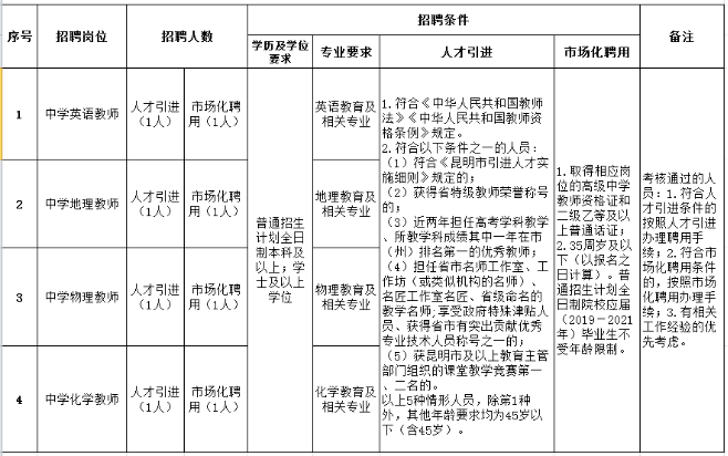昆明滇池中學(xué)2021年人才引進(jìn)、招聘市場(chǎng)化聘用教師公告