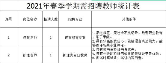 因學校工作需要,經學校領導協(xié)商,現(xiàn)決定面向社會公開招聘工作人員數(shù)名,現(xiàn)將招聘事宜公告如下: