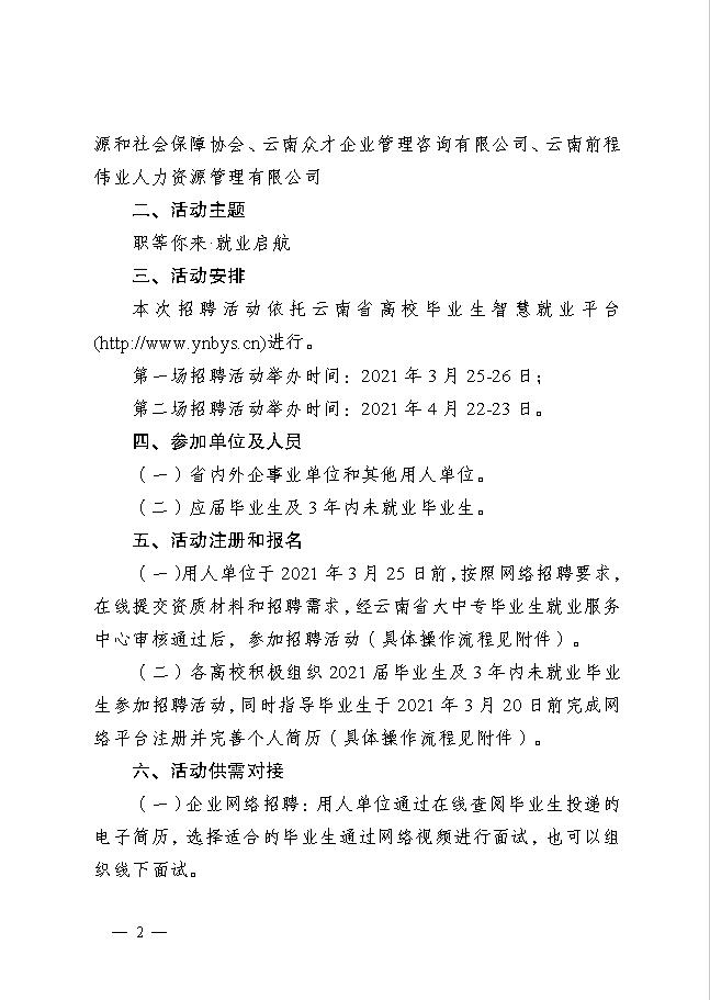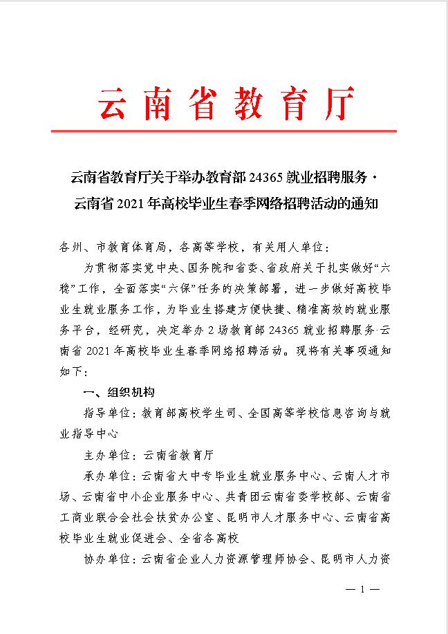 云南省 2021年普通高校畢業(yè)生春季網(wǎng)絡(luò)招聘活動(dòng)的通知