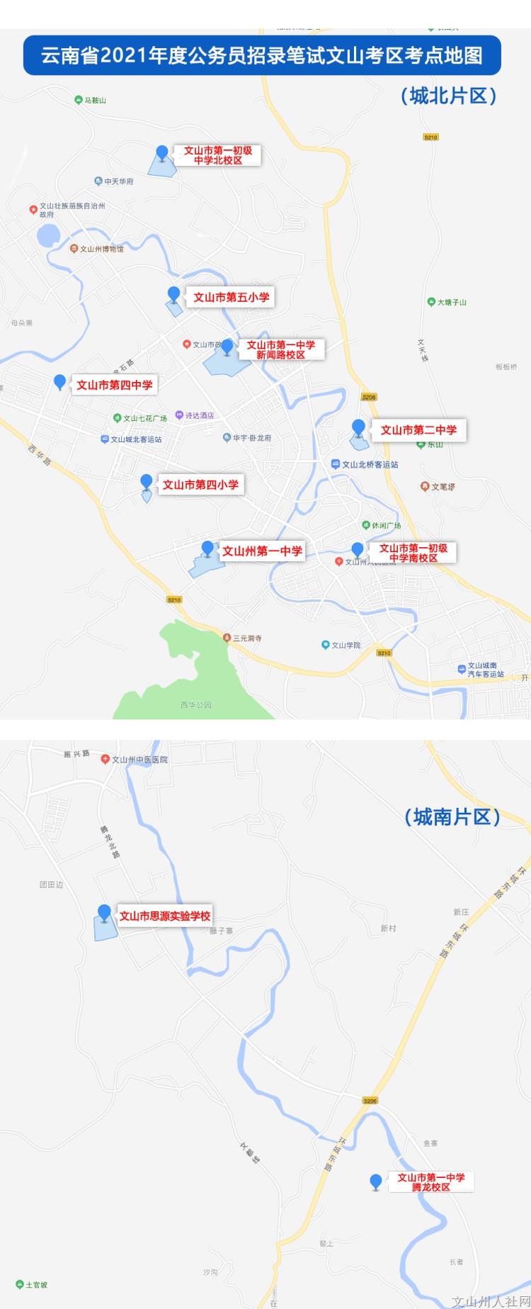 云南省2021年度公務(wù)員招錄筆試文山考區(qū)各考點地圖鏈接