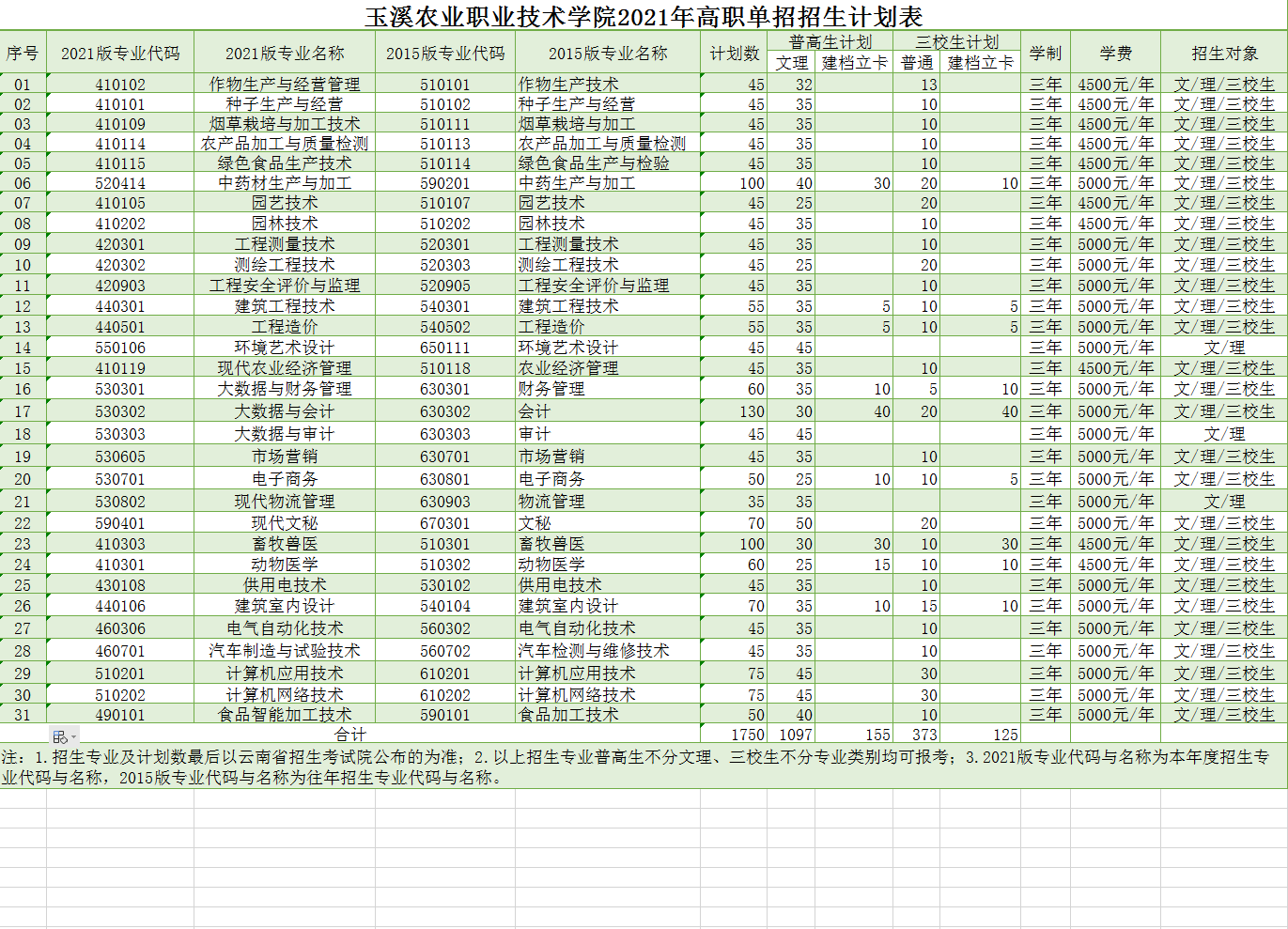 2021年玉溪農(nóng)業(yè)職業(yè)技術(shù)學(xué)院高職單招計(jì)劃