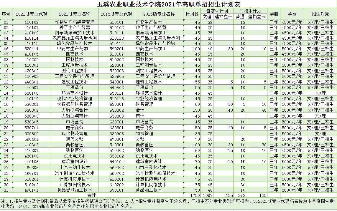為貫徹落實《國務院關于深化考試招生制度改革的實施意見》(國發(fā)〔2014〕35號)精神,深化高職院校招生改革,進一步推動我省高等職業(yè)教育發(fā)展,加快構(gòu)建現(xiàn)代職業(yè)教育體系,2021年玉溪農(nóng)業(yè)職業(yè)技術學院單獨考試招生(以下簡稱高職單招)具體辦法如下: