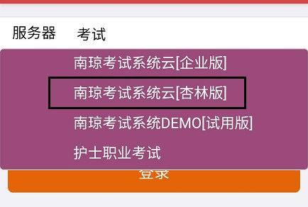 第三步 在服務器中 輸入【考試】,選擇【南瓊考試系統(tǒng)云[杏林版]】