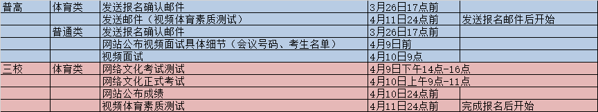 報考以上專業(yè)的考生,需要進行職業(yè)適應性測試(視頻體育素質測試),考察形式為發(fā)送視頻郵件形式,考生需在2021年4月11日24點前發(fā)送郵件到y(tǒng)nnuzlg@vip.126.com,要求見“三、視頻錄制要求”,考試內容為:1分鐘仰臥起坐(100分)+1分鐘跳繩(100分),滿分為200分。(注:完成報名后即可開始此項測試)