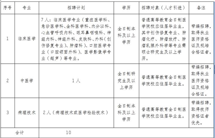 (二)病理技術(shù)崗位帶編招聘,研究生取得技師資格證的,待遇同(一),約定服務(wù)期限至少10年;本科畢業(yè)生,約定服務(wù)期限至少5年。