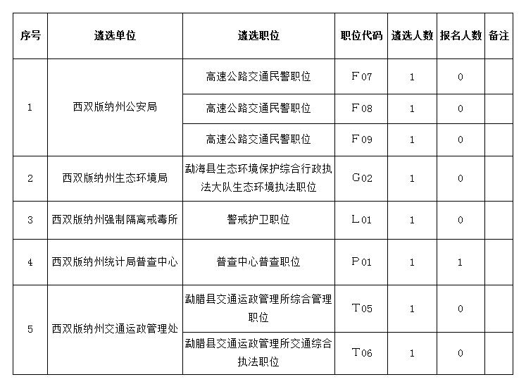 西雙版納州州級機(jī)關(guān)(單位)2021年公開遴選公務(wù)員(參照公務(wù)員法管理人員)報名工作已于2021年4月2日18時結(jié)束。根據(jù)《西雙版納州州級機(jī)關(guān)(單位)2021年公開遴選公務(wù)員(參照公務(wù)員法管理人員)公告》筆試開考比例規(guī)定,現(xiàn)決定取消以下遴選職位: