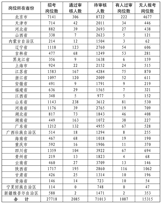 1.截至4月7日17時(shí)各省份崗位報(bào)考情況統(tǒng)計(jì)表