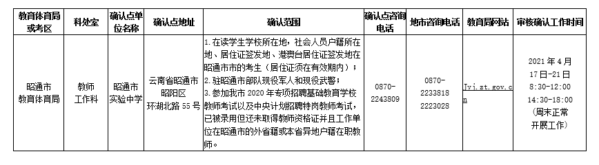 2.昭通市2021年上半年教師資格考試面試現(xiàn)場確認安排表