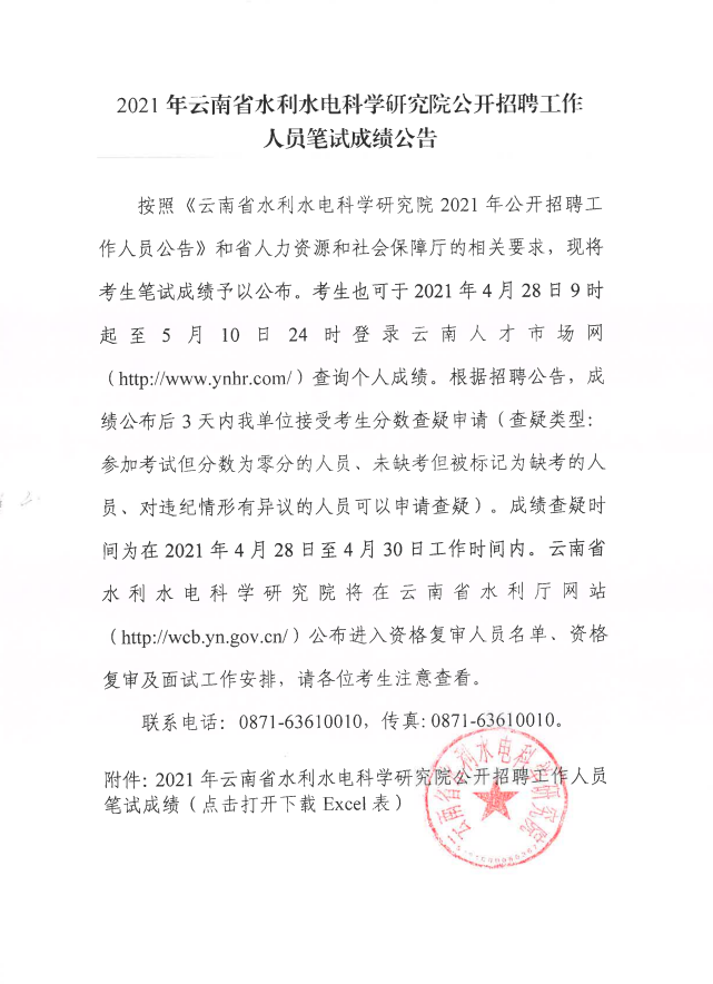 云南省水利水電科學研究院2021年公開招聘工作人員筆試成績 來源:http://www.ynhr.com/index.php?m=&c=news&a=news_show&id=5193