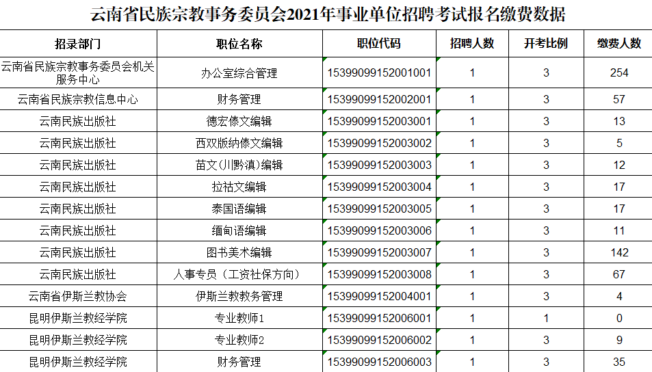 2021年云南省民族宗教事務委員會事業(yè)單位招聘報名繳費人數