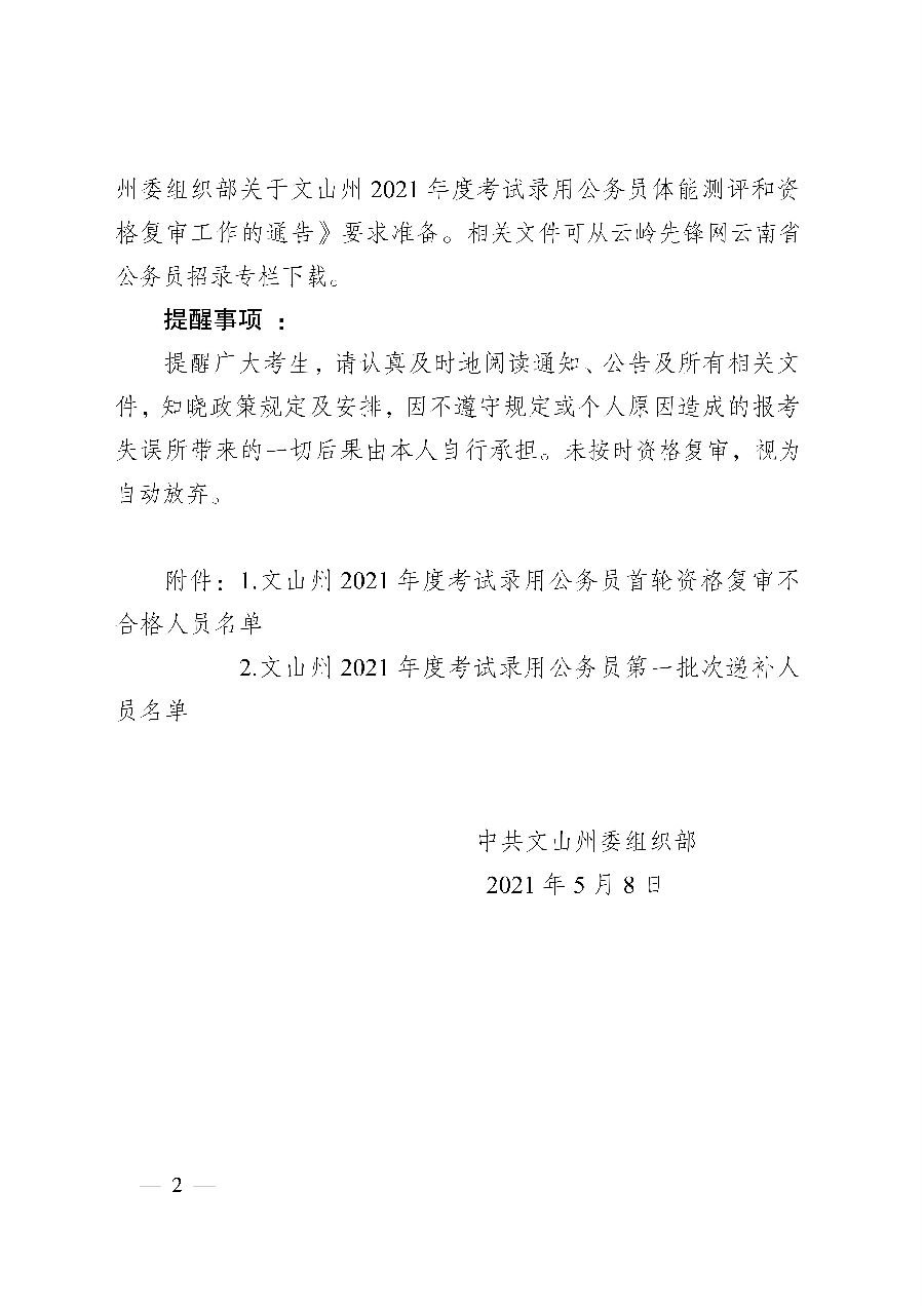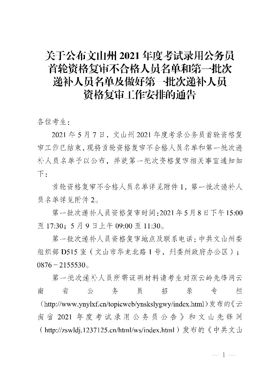 附件1.文山州2021年度考試錄用公務(wù)員首輪資格復(fù)審不合格人員名單.xls
