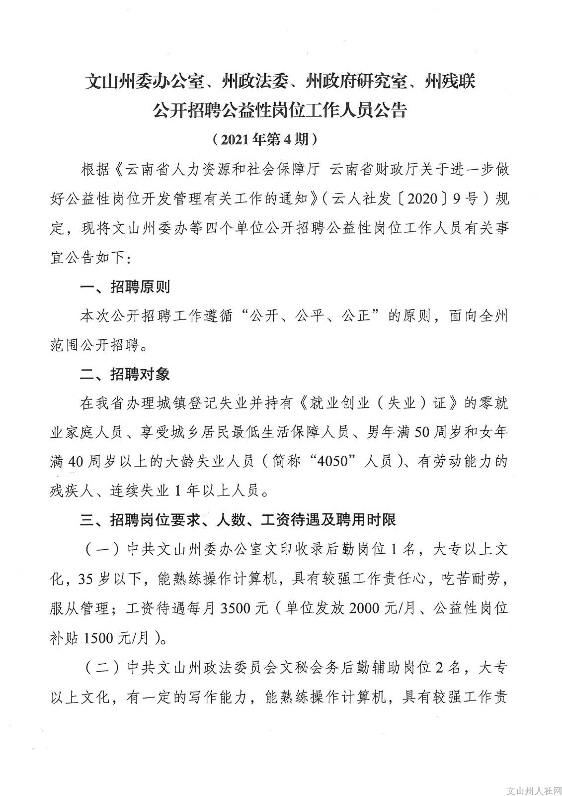 2021年文山州委辦公室州政法委州政府研究室州殘聯(lián)招聘公告