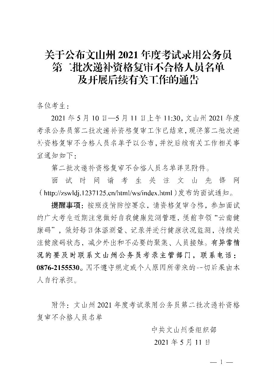 附件:文山州2021年度考試錄用公務(wù)員第二批次遞補(bǔ)資格復(fù)審不合格人員名單.xls