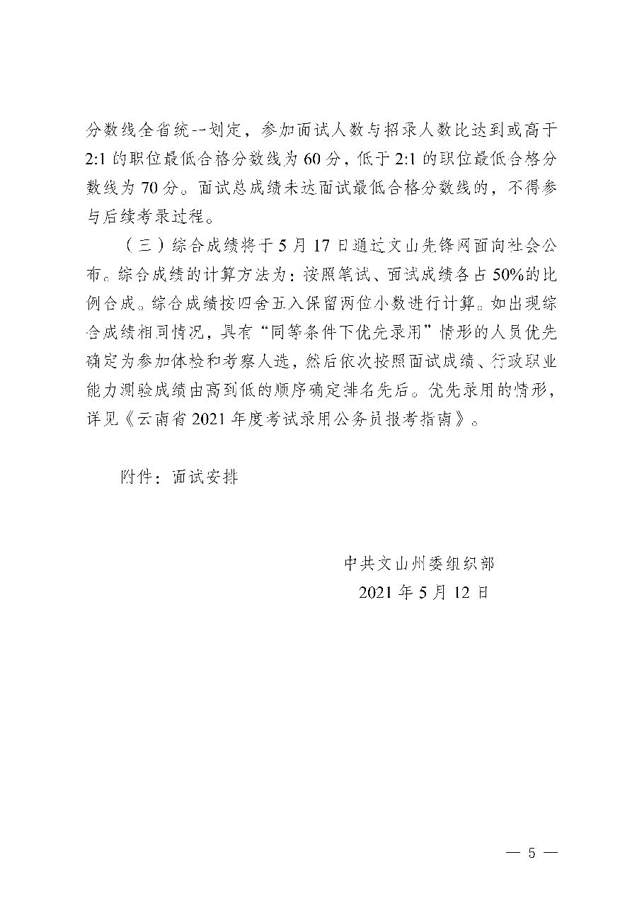 關(guān)于開展文山州2021年度考試錄用公務(wù)員面試工作的通告