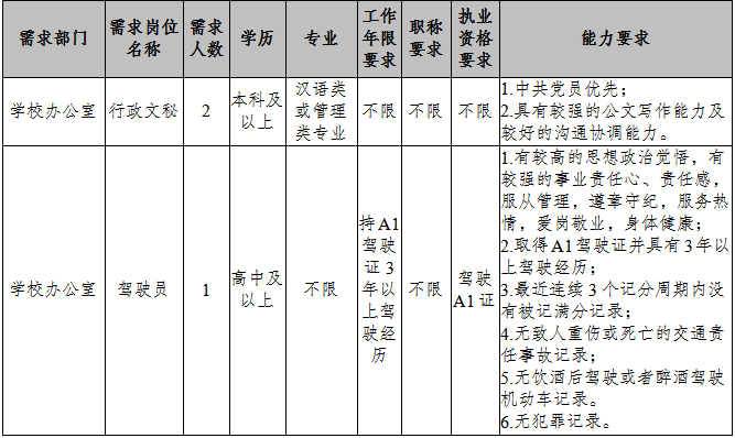 關(guān)于學(xué)校辦公室行政崗位及駕駛員崗位招聘公告