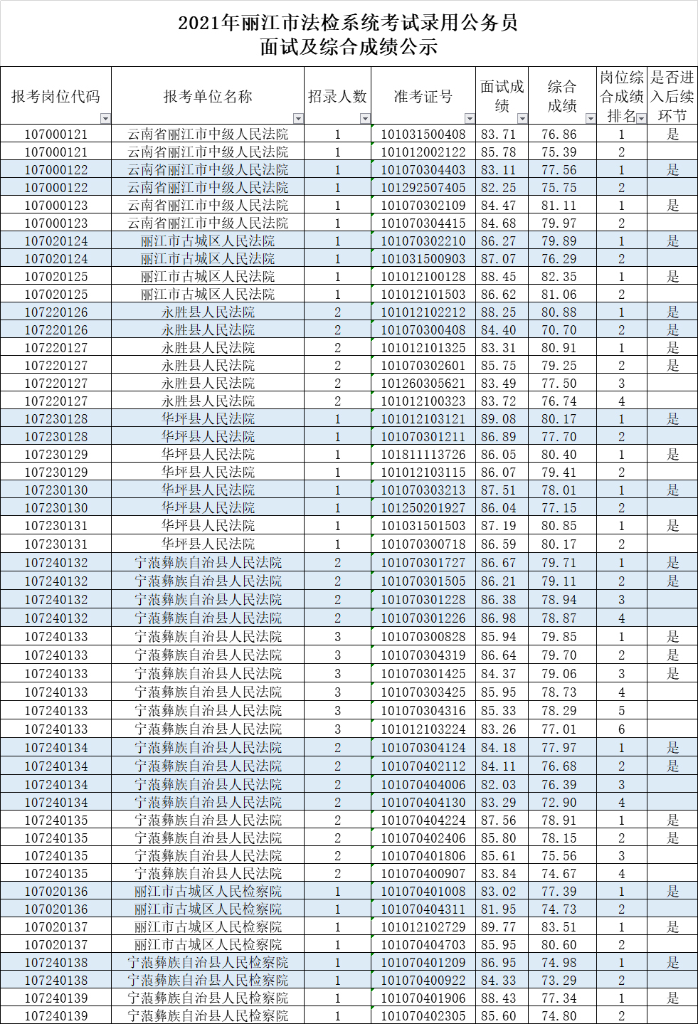 2021年麗江市法檢系統(tǒng)考試錄用公務(wù)員面試及綜合成績公示