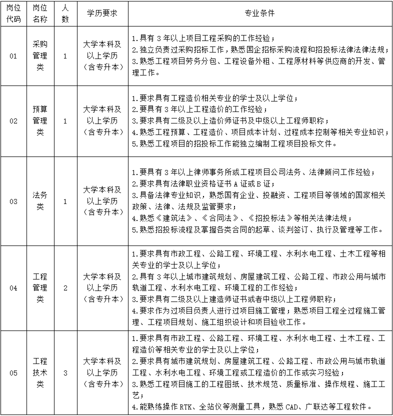 本次招聘面向社會(huì)公開(kāi)招聘,招聘人數(shù)預(yù)計(jì)10人:采購(gòu)管理類(lèi)1人,預(yù)算管理類(lèi)1人,法務(wù)類(lèi)1人,工程管理類(lèi)2人、工程技術(shù)類(lèi)3人、財(cái)務(wù)類(lèi)2人。
