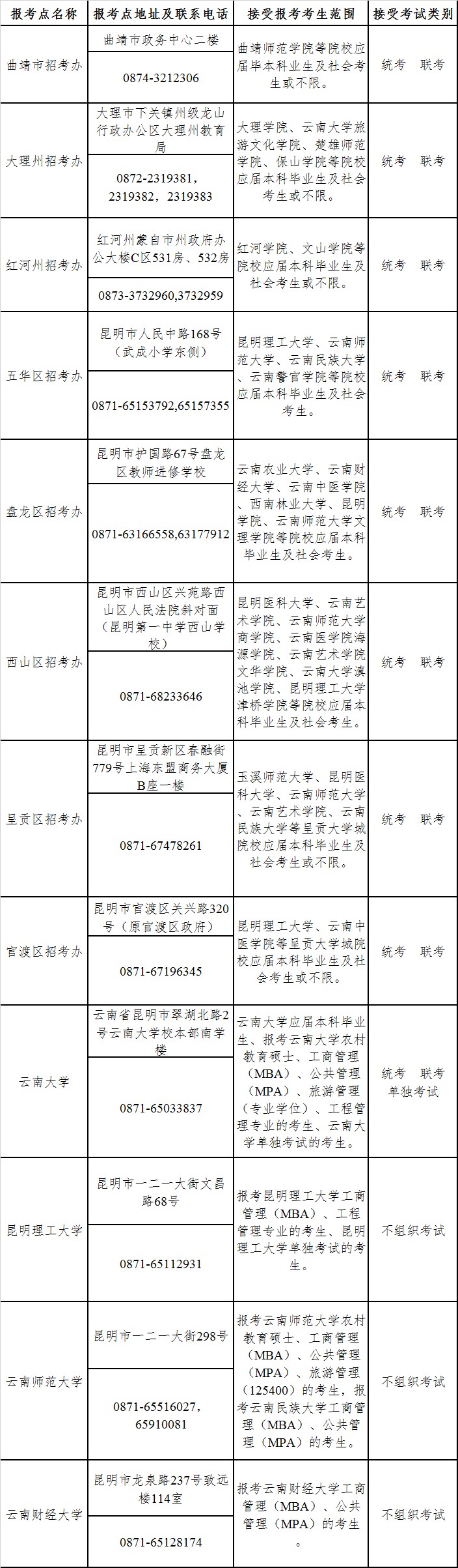 (1)所有考生均須到云南省招生考試院指定的報(bào)考點(diǎn)進(jìn)行現(xiàn)場(chǎng)確認(rèn)網(wǎng)上報(bào)名信息,逾期不再補(bǔ)辦。應(yīng)屆本科畢業(yè)生原則上應(yīng)選擇就讀學(xué)校所在州(市、區(qū))的報(bào)考點(diǎn)辦理網(wǎng)上報(bào)名和現(xiàn)場(chǎng)確認(rèn)手續(xù);單獨(dú)考試、報(bào)考工商管理(MBA)、公共管理(MPA)、旅游管理和工程管理等專業(yè)學(xué)位的考生應(yīng)選擇在報(bào)考的院校辦理網(wǎng)上報(bào)名和現(xiàn)場(chǎng)確認(rèn)手續(xù);其他考生應(yīng)選擇工作或戶口所在地州(市、區(qū))的報(bào)考點(diǎn)辦理網(wǎng)上報(bào)名和現(xiàn)場(chǎng)確認(rèn)手續(xù)。
