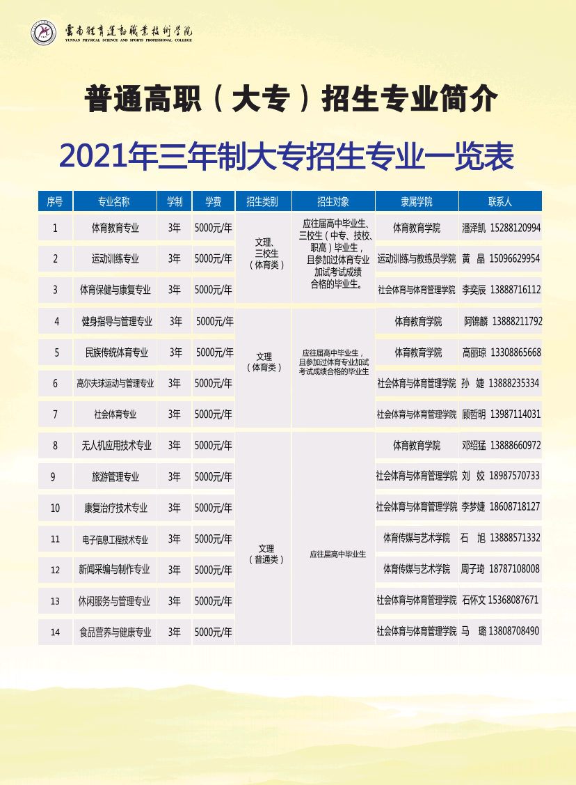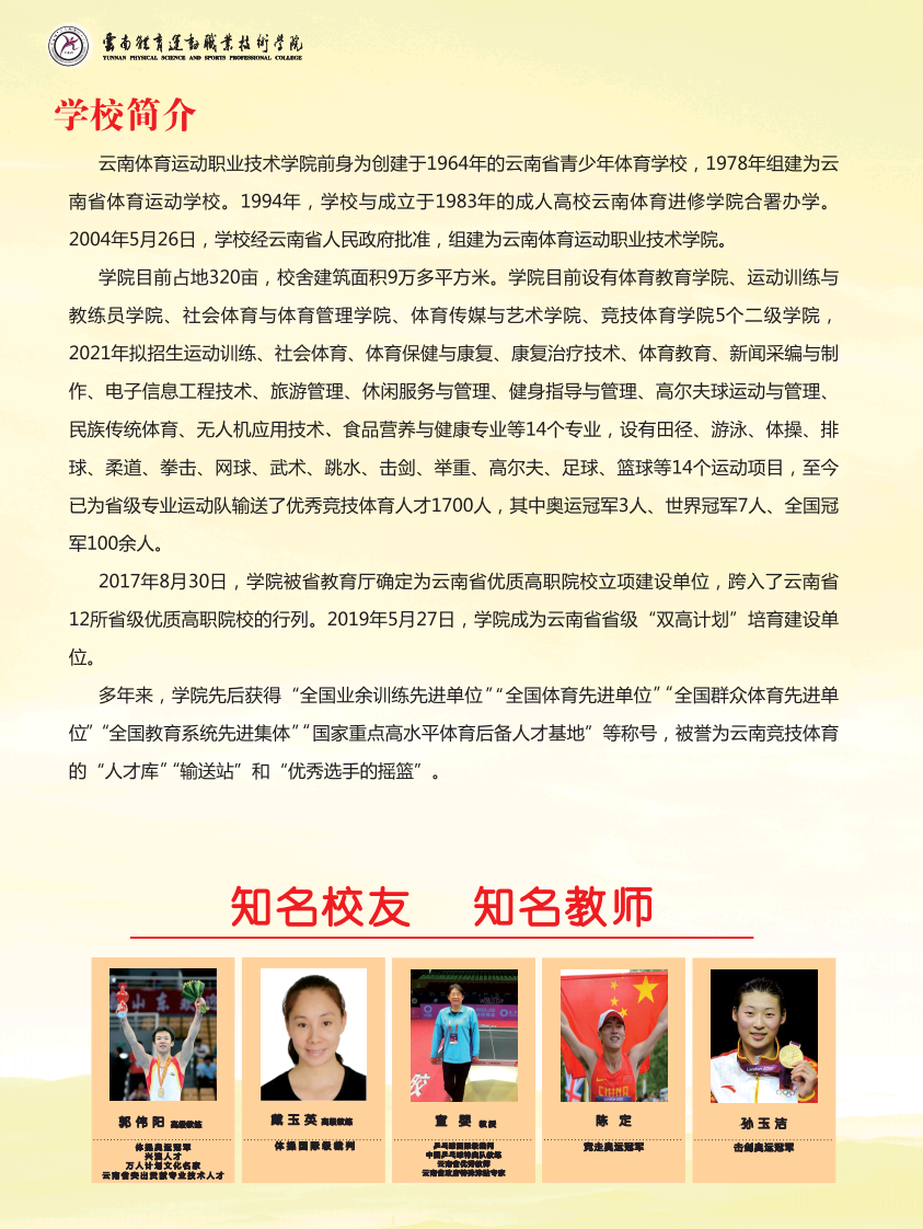 云南體育運(yùn)動(dòng)職業(yè)技術(shù)學(xué)院2021年招生簡(jiǎn)章