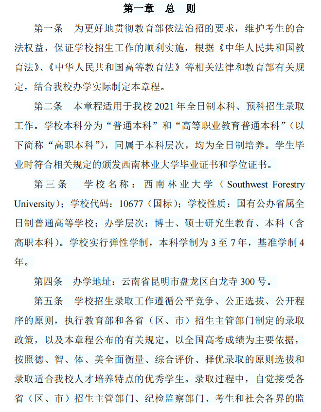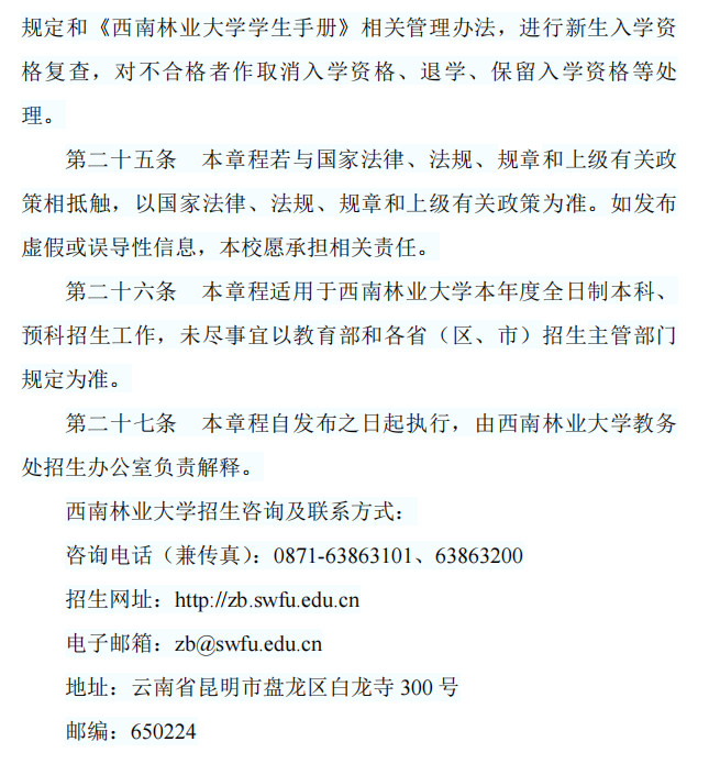 2025年西南林業(yè)大學普通本科招生章程